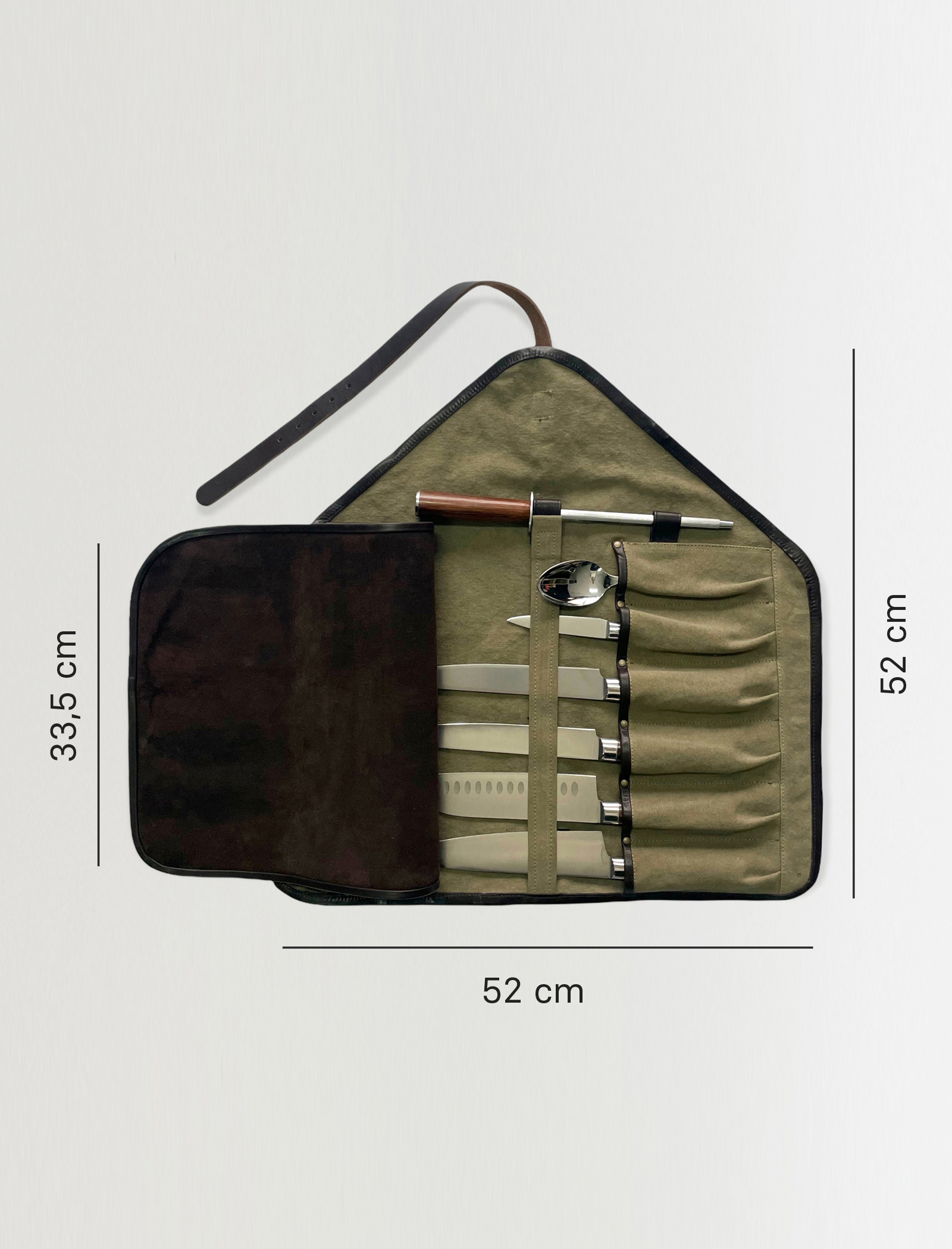 - Bolsa enrollable para 6 cuchillos. CUCHILLOS NO INCLUIDOS.