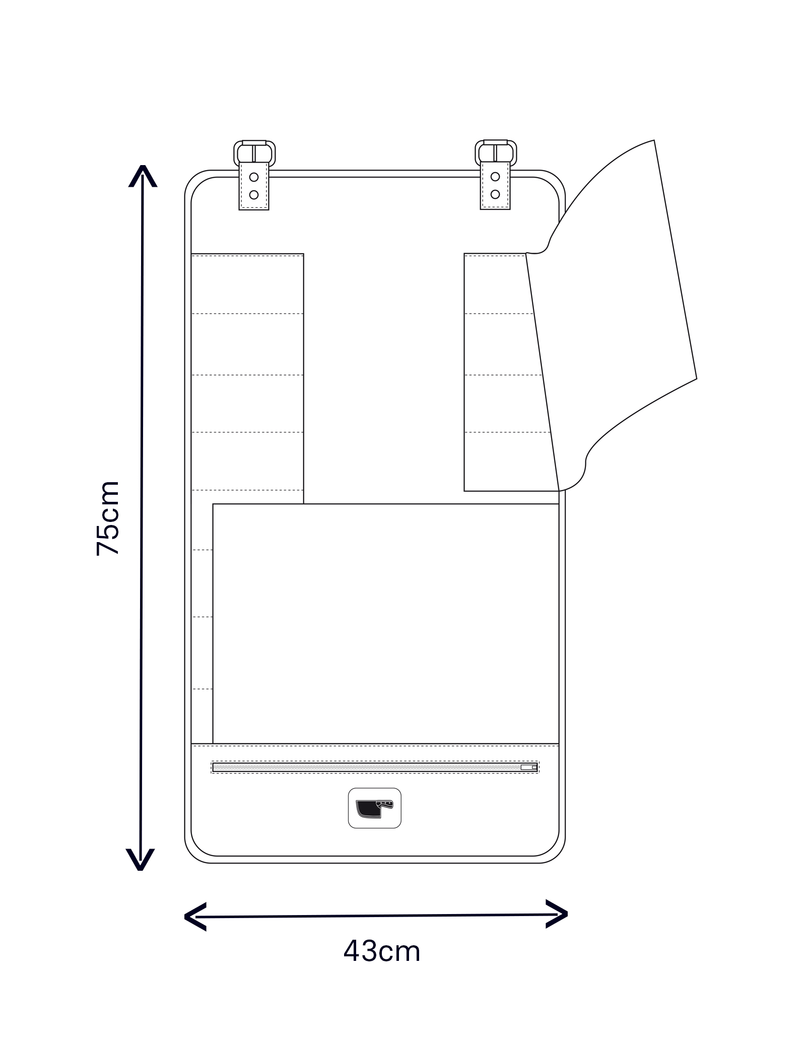 - Dimensiones de la bolsa extendida: 75 cm x 43 cm.