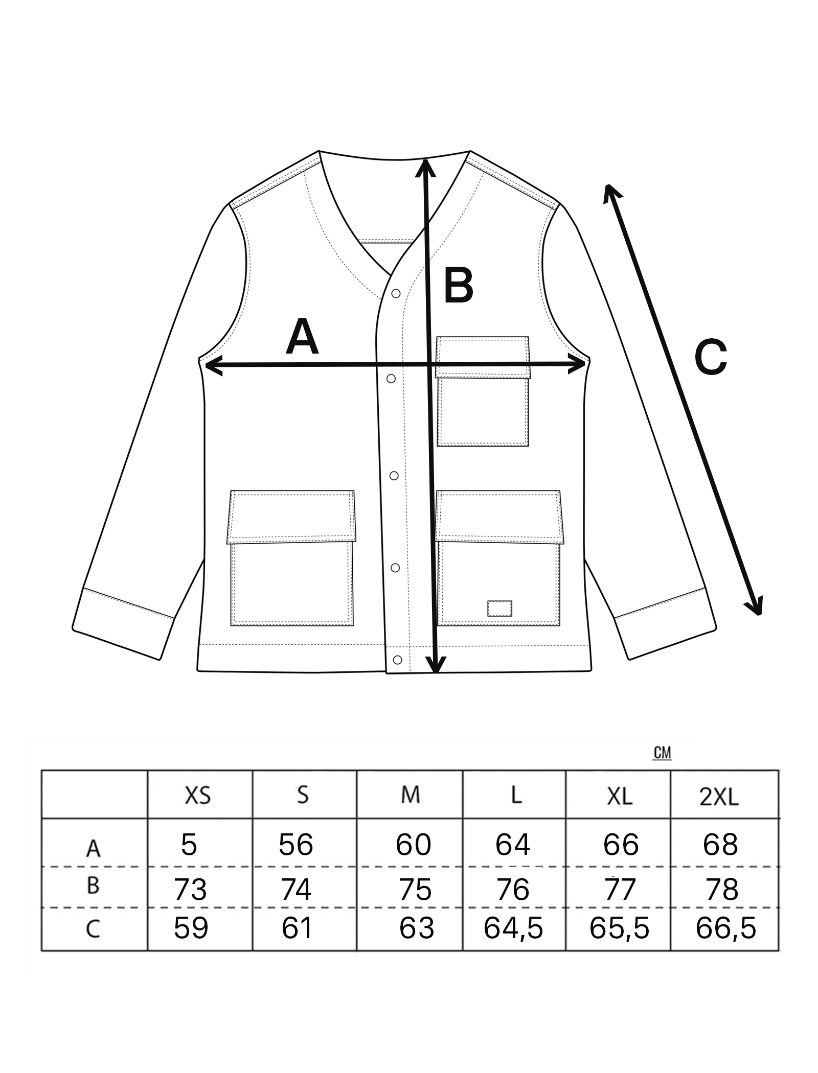 La chaqueta Labour presenta tres prácticos bolsillos con solapa: dos a la altura de las manos y uno en el pecho, ideal para llevar lo esencial siempre a la mano. Su diseño minimalista se complementa con un cuello abierto, que aporta un toque relajado y moderno, haciéndola fácil de combinar con cualquier atuendo.