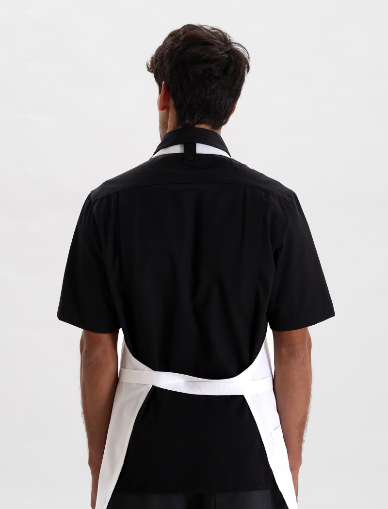 El delantal Clipper para chef fusiona estética y funcionalidad en un diseño moderno y sofisticado. Los detalles como la pieza de cuero y el botón decorativo de metal, agregan un toque contemporáneo. La cinta de cuello y cintura extra largas permiten un ajuste perfecto para chefs de todas las tallas. Incorpora un práctico porta pinzas en el pecho, asegurando fácil acceso a las herramientas esenciales en la cocina.