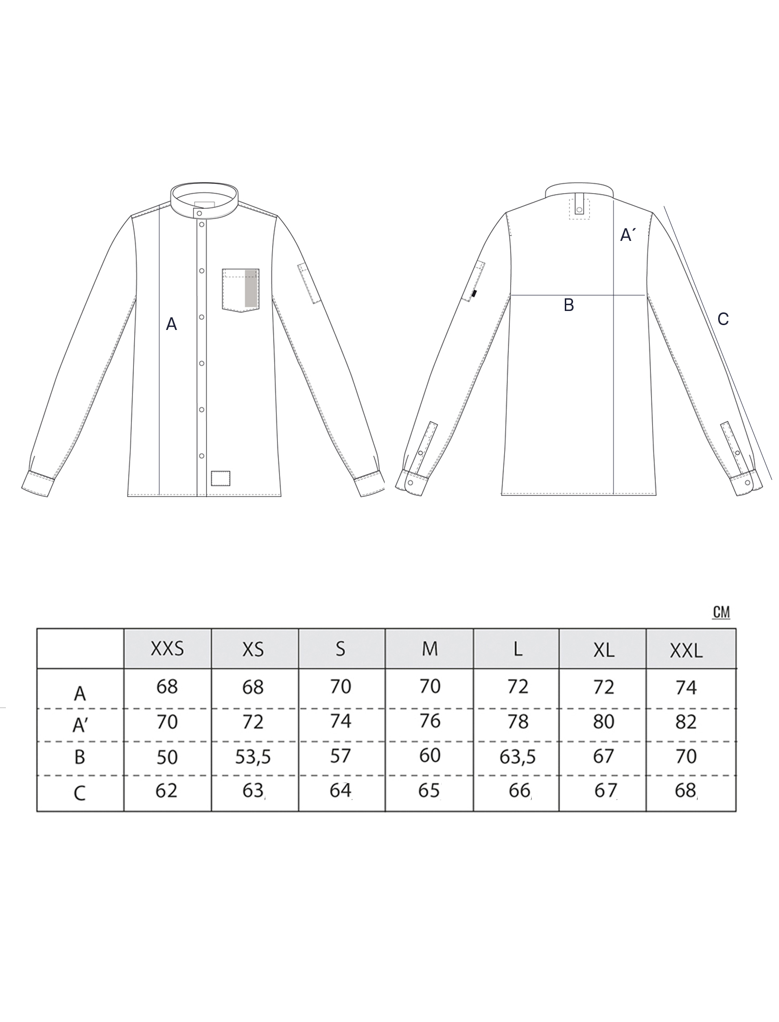 Ein langärmeliges graues Kochhemd mit einem tadellosen, modernen Look. Die Druckknöpfe und der überkreuzte Kragen sorgen für hohen Tragekomfort im Alltag. Die Brusttasche verbirgt eine kleine Innentasche und die Ärmeltasche erfüllt Ihre Bedürfnisse bei der Arbeit. Die Ärmel können dank der maximalen Öffnung an der Manschette bequem hochgekrempelt werden.