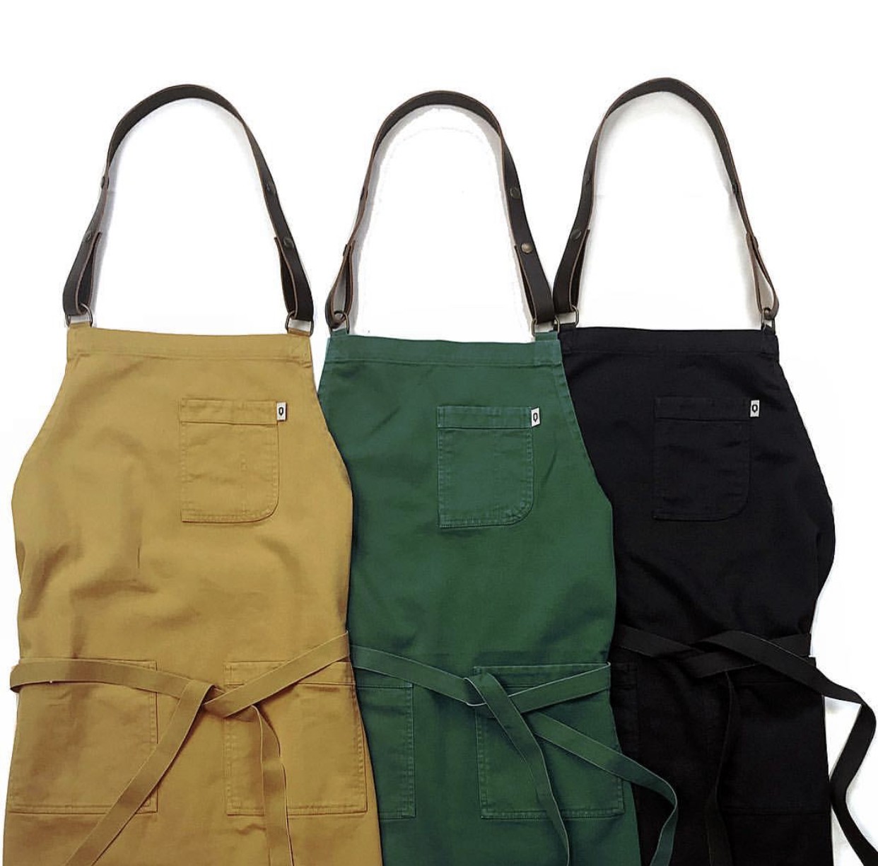 Unsere Kollektion von handgefärbten Denim-Schürzen.